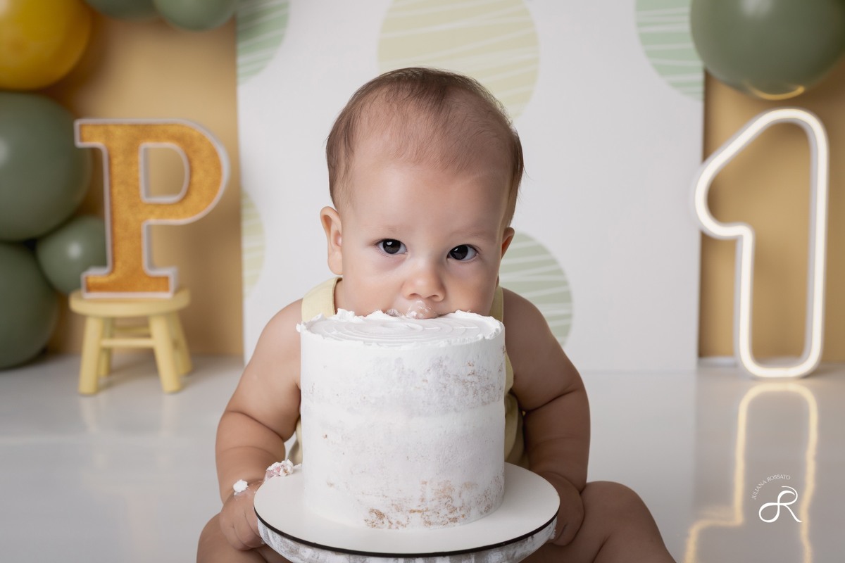 Pedro comemorou seu primeiro aniversário do jeitinho que ele merece: com cores suaves, sorrisos sinceros e muita doçura. 💚💛 Foram 365 voltas ao sol, cheias de descobertas, crescimento e amor. Cada detalhe desse ensaio smash foi pensado para contar um pedacinho dessa história tão especial.